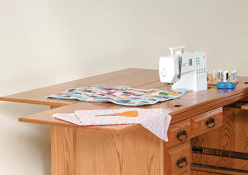 The Double Pedestal sewing cabinet is designed for your comfort. The airlift makes storing your sewing machine out of sight an easy task. You can also raise the sewing machine to the height that works best for you.